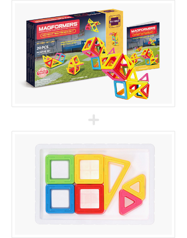 맥포머스 Tiny Friends set는 삼각형 7개, 사각형 11개, 이등변 삼각형 2개로 구성 되어 있습니다. 알록달록 6가지 크레용 컬러 맥포머스 20개를 이용해서 아기자기 귀여운 동물친구들을 만들어 보세요. 몇 가지의 도형만으로 12가지의 동물들을 표현해 볼 수 있습니다.