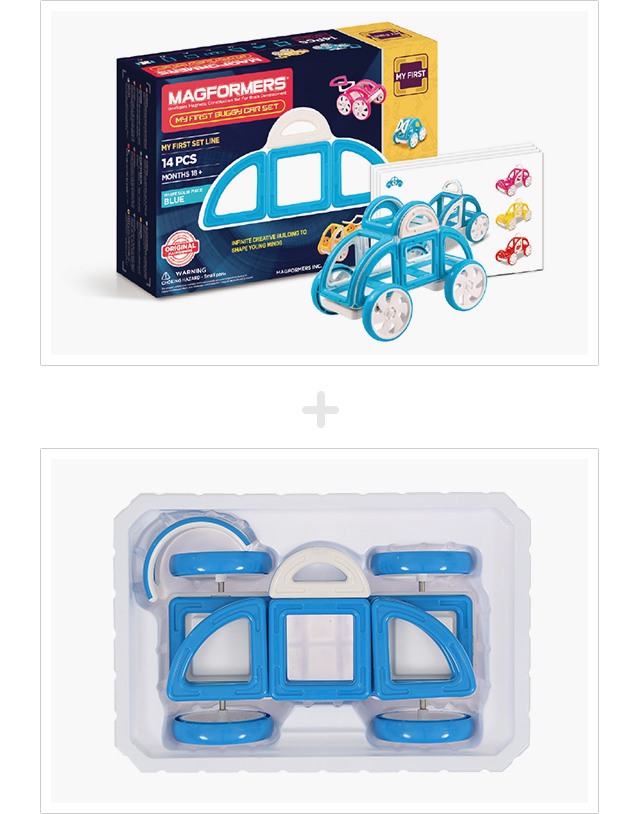 맥포머스 마이퍼스트 버기카 세트는 한 쪽 면이 흰색으로 되어있는 화이트 솔리드 피스 14개로 구성되어 있습니다. 아이들이 좋아하는 4가지 색깔이 있는 이 세트는 자신이 좋아하는 컬러의 세트를 직접 선택할 수 있습니다.