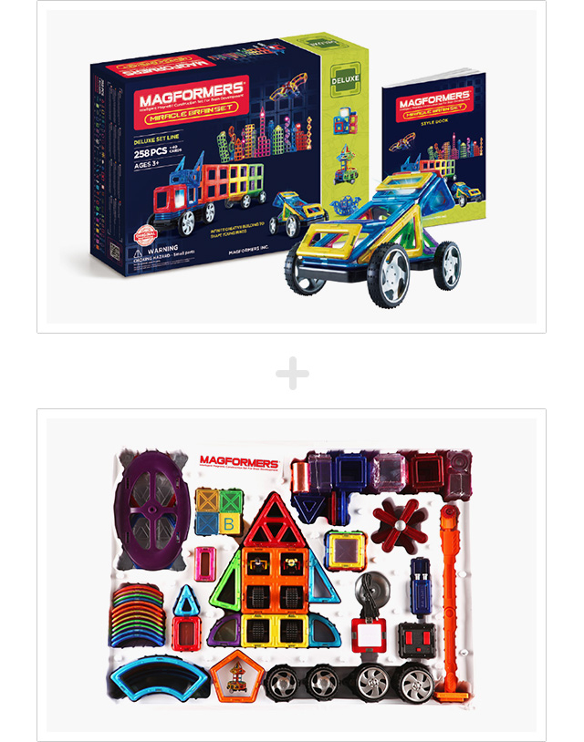 섬세함과 웅장함을 표현하는 새로운 도형들, 다양한 색상의 빛을 표현하는 LED Lighted Box와 나만의 맥포머스 자동차를 직접 조종할 수 있는 R/C 리모컨과 R/C 바퀴가 포함된 세트입니다.