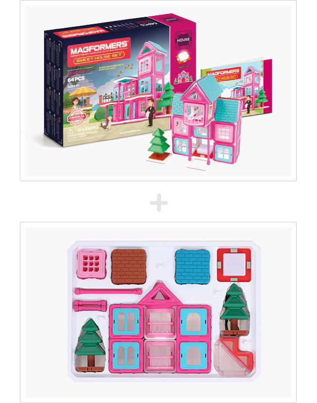조형물에 디테일을 더해줄 다양한 하우스 액세서리와 맥포머스를 사용하여, 아이들이 건축가가 되어 나만의 맥포머스 하우스를 직접 만들어 볼 수 있는 세트입니다.