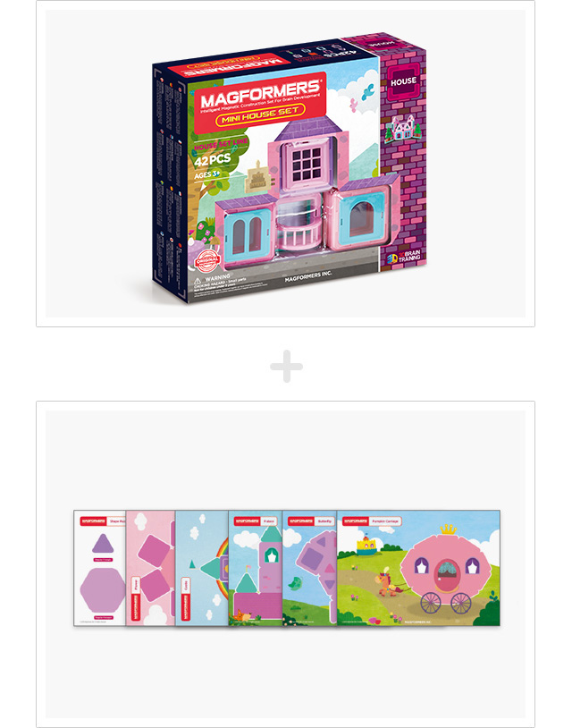 맥포머스 미니 하우스 세트(Magformers Mini House Set)는 여자 아이들이 좋아하는 핑크톤의 자석 피스와 하우스 액세서리가 함께 포함되어 있는 세트입니다. 다양한 형태의 미니 하우스 조형물은 물론 평면퍼즐 콘텐츠가 포함되어 있어 다양한 평면활동을 해볼 수도 있습니다.맥포머스 자석피스로 여러 가지 조형물을 만들어 보고, 하우스 액세서리를 이용하여 나만의 미니 하우스를 꾸며 보세요.