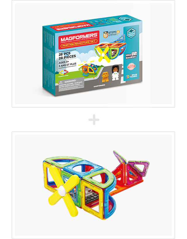 조종사 피규어와 함께 만드는 맥포머스 비행기! 맥포머스 에비에이션 세트는 맥포머스를 가지고 다양한 비행기를 만들고, 조종사 피규어와 강아지 피규어를 이용해 스토리텔링 할 수 있습니다.