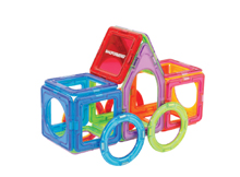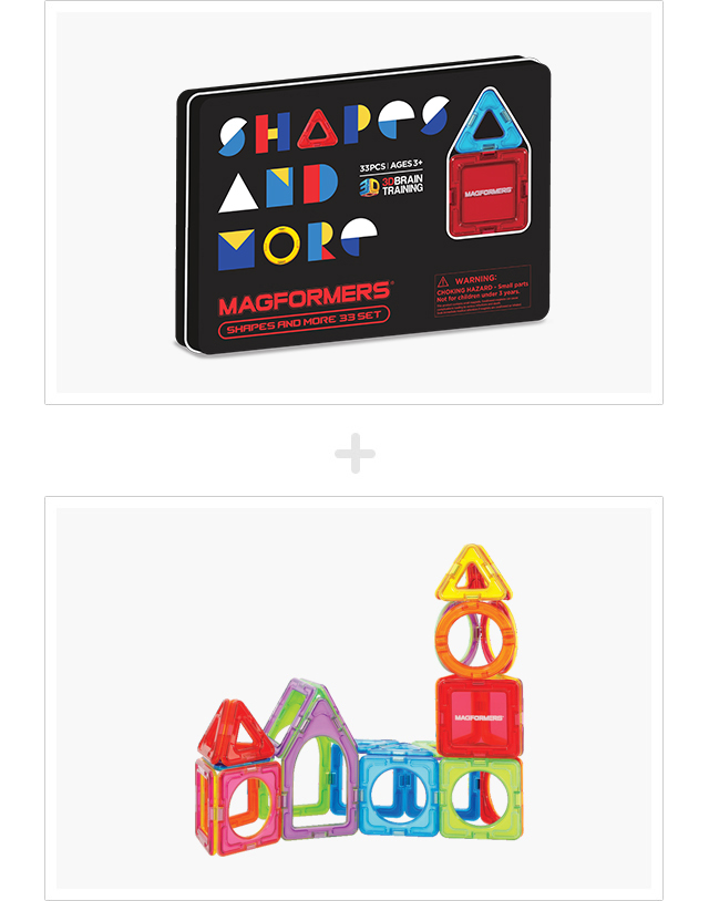 MAGFORMERS SHAPES AND MORE 33 PCS SET에는 7가지 모양의 자석 피스 33개가 포함되어 있습니다. 아이들은 내부 원 사각형, 호, 원 및 새로운 오각형 자석 피스로 독특한 2D 및 3D 모델을 만들 수 있습니다.