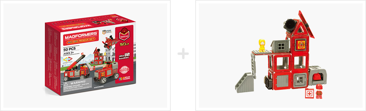 "맥포머스의 놀아운 변화! Amazing Rescue Set! 맥포머스에서 처음 선보이는 레스큐 컨셉의 제품으로 구조차, 구조선, 구조헬기, 구조본부 뿐 아니라 다채로운 조형물을 50가지 이상 만들 수 있도록 고안된 세트입니다. 2D에서 3D로 변하는 마법같은 자석블록과 액세서리를 활용하여 단순한 조형작업을 넘어 재미있는 놀이까지!