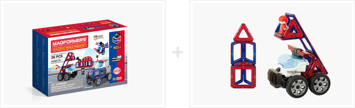 한 개의 세트로 두개의 테마를!Amazing Police & Rescue Set! 어메이징 폴리스 앤 레스큐 세트는 한 개의 세트로 폴리스와 레스큐 테마 조형물을 모두 만들 수 있는 가성비 높은 세트로 10개의 폴리스 조형물과, 10개의 레스큐 조형물 그리고 10개의 기본 조형물을 만들어 볼 수 있습니다.