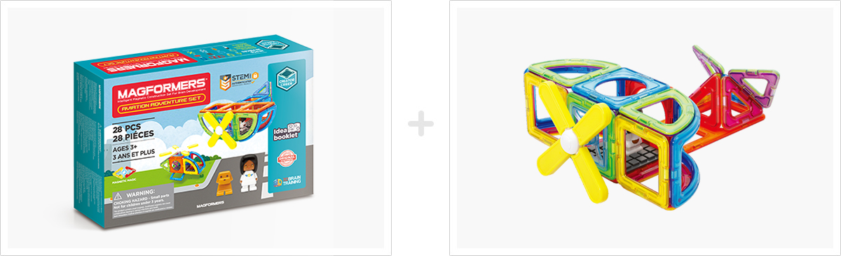 조종사 피규어와 함께 만드는 맥포머스 비행기! 맥포머스 에비에이션 세트는 맥포머스를 가지고 다양한 비행기를 만들고, 조종사 피규어와 강아지 피규어를 이용해 스토리텔링 할 수 있습니다.