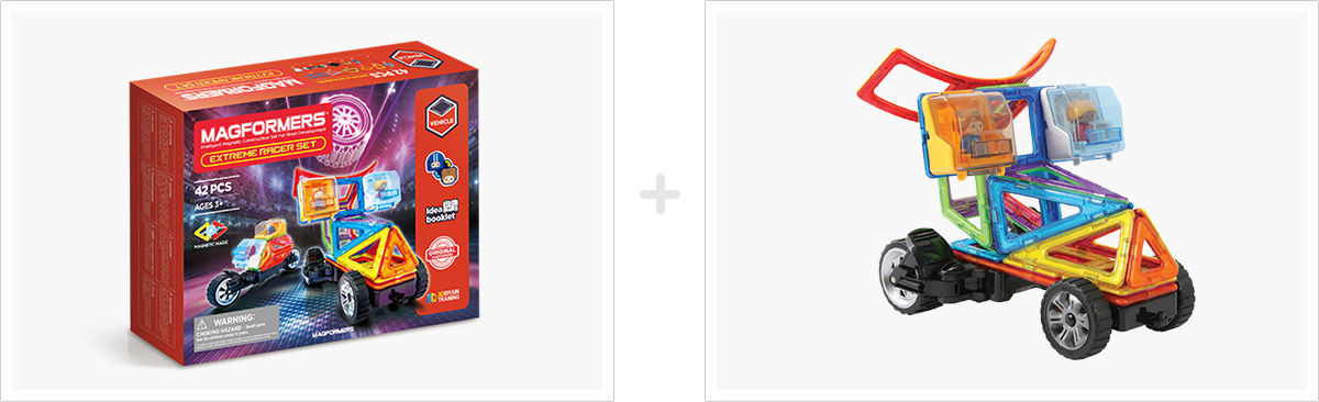 Extreme Racer set는 재미있는 맥포머스 세트입니다.새로운 피규어, 액세서리와 함께 7가지 다른 자석 모양을 사용하여 4가지 이상의 차량을 조립할 수 있습니다.