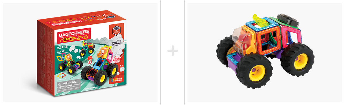 맥포머스에서 제일 큰 바퀴 피스가 나왔어요! 맥포머스 자이언트휠세트는 지금까지 맥포머스 바퀴 중 가장 큰 사이즈로 존재만으로 와일드함을 더해줍니니다. 6가지 자석도형과 피규어, 자동차 액세서리로 나만의 자동차를 만들어 보세요.