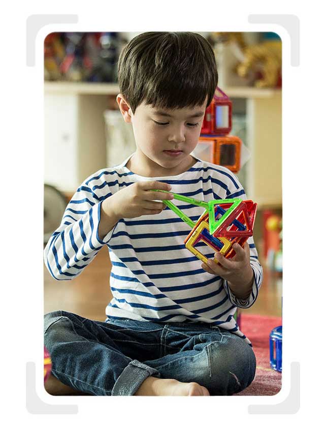 주도적 학습 맥포머스의 놀이요소는 흥미와 호기심을 자극해 아이들이 주도적으로 참여하게 합니다.