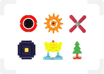 기하도형을 기반으로 한 기본 구성 이외에 바퀴, 파워블록, 엔진블록 ,RC, LE, 기어 등 다양한 액세서리를 활용하여 재미는 물론 코딩의 기초와 원리를 경험할 수 있는 교육적 특성을 확장시켰습니다.