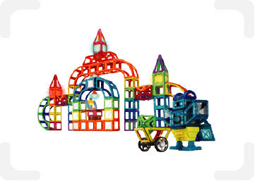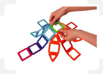 맥포머스는 도형 내부의 자성체가 회전현상을 일으켜, 극에 상관없이 도형의 모든 부분이 서로 붙도록 연구되었습니다. 일반 블록처럼 쌓기만 하는 것이 아닌, 360도 어느 방향이든 연결할 수 있어 상상 속 입체 도형을 3차원으로 구체화 할 수 있습니다.